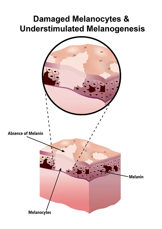 - Stimulates inactive melanocytes to resume melanin production, restoring natural pigmentation.